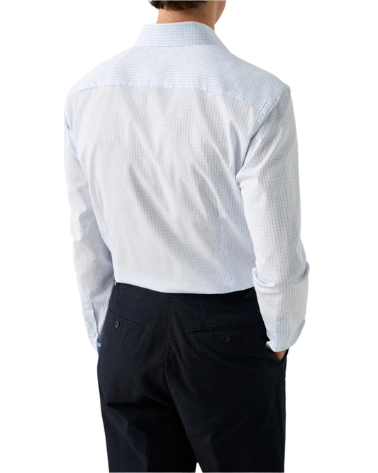 LIGHT BLUE CHECK ON WHITE ELEVATED PIQUE SHIRT