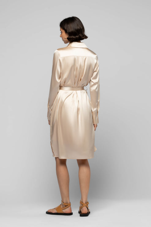 RAESA SILK SHIRT DRESS WITH LEATHER DETAIL