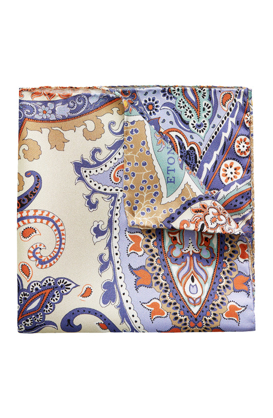 PURPLE ORANGE AND TAN FLORAL PAISLEY PRINT SILK POCKET SQ...