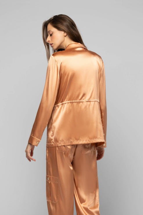 RAESA SILK SHIRT DRESS WITH LEATHER DETAIL