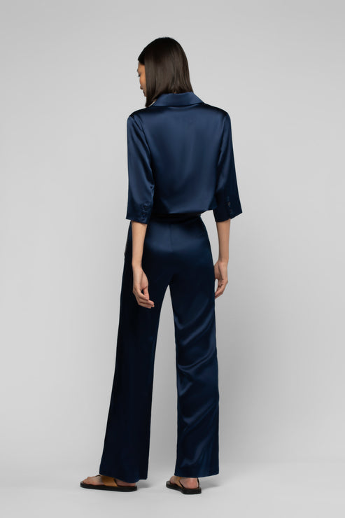 BALICIA SILK PANT WITH LEATHER DETAIL