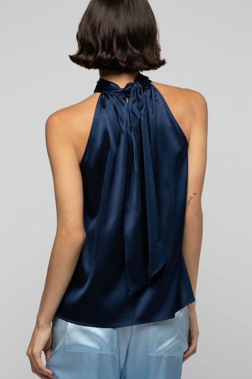 LANGELIKA SILK TOP WITH LEATHER DETAIL