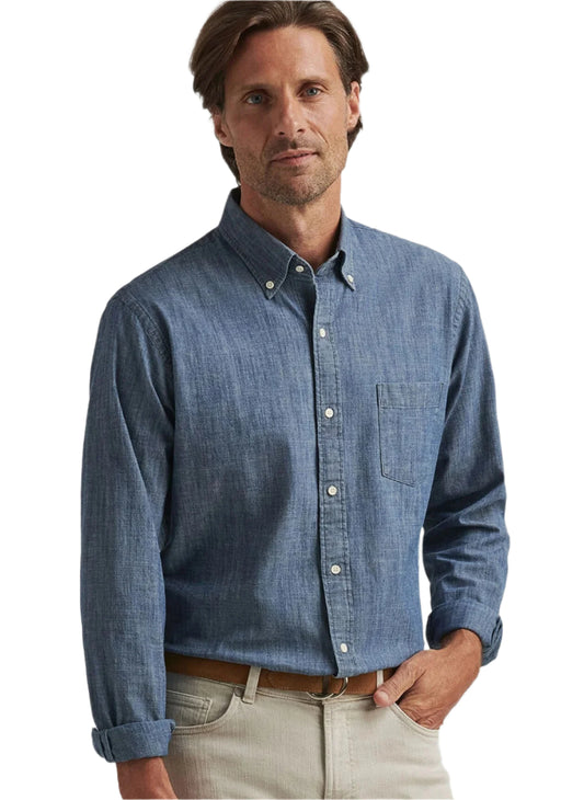 TAMWORTH CHAMBRAY COTTON-STRETCH SHIRT