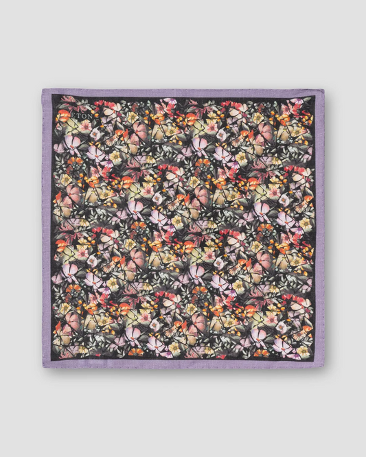 BLACK MULTI FLORAL PRINT LINEN POCKET SQUARE