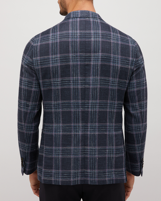 NAVY AND PURPLE PLAID VIRGIN WOOL BLEND SOFT COAT