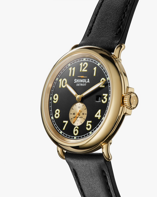 THE RUNWELL AUTOMATIC 45MM BLACK WATCH WITH POLISHED GOLD...