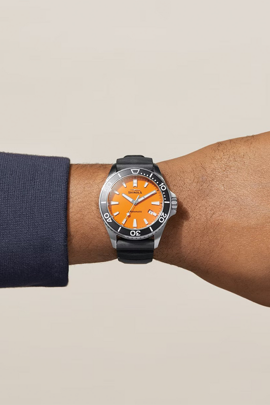 SHINOLA MONSTER 43 MM BLACK RUBBER STRAP WITH ORANGE DIAL...