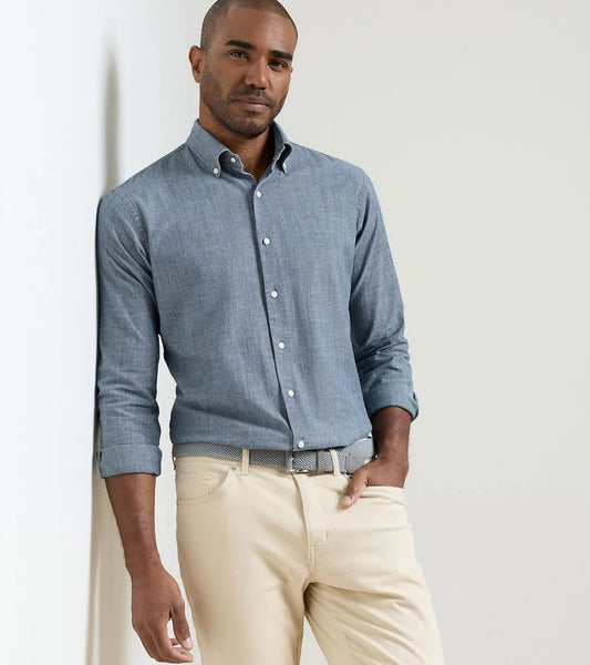 DEVONPORT CHAMBRAY COTTON-STRETCH SHIRT