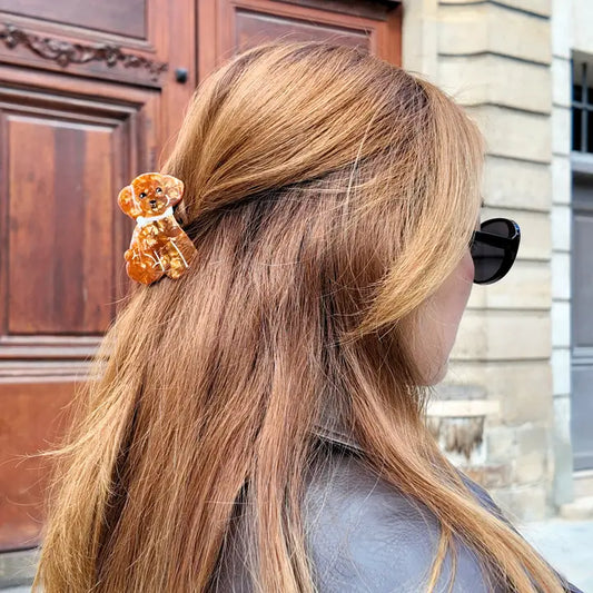 HAND PAINTED DOODLE DOG CLAW CLIP- TAN