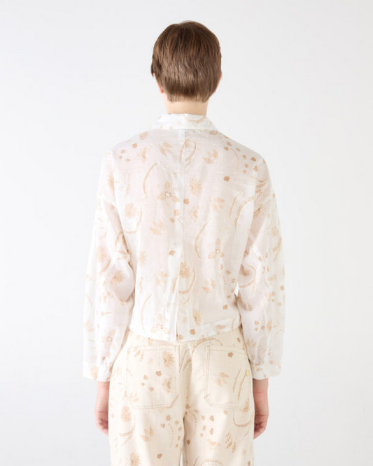IVORY AND BEIGE PRINTED MUSLIN BUBBLE SHIRT
