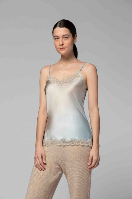 SILK CAMI WITH LACE TRIM