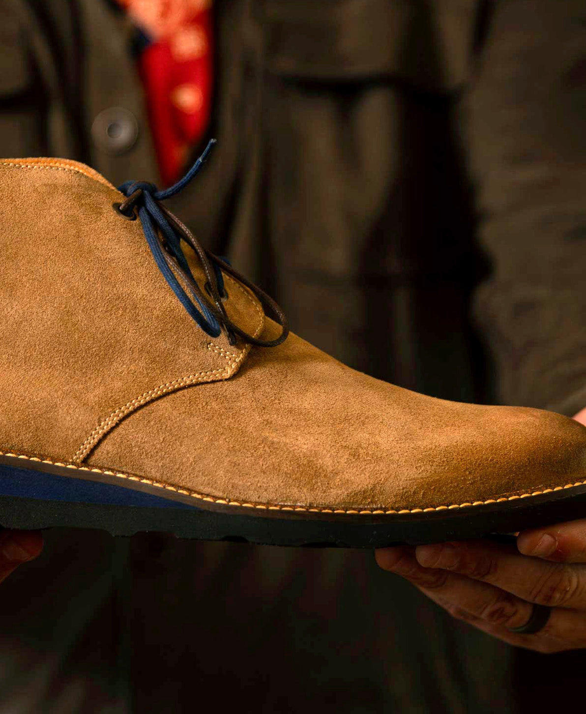 Embrace rain or shine with timeless khaki chukka boots featuring water-repellent suede and unmatched comfort.