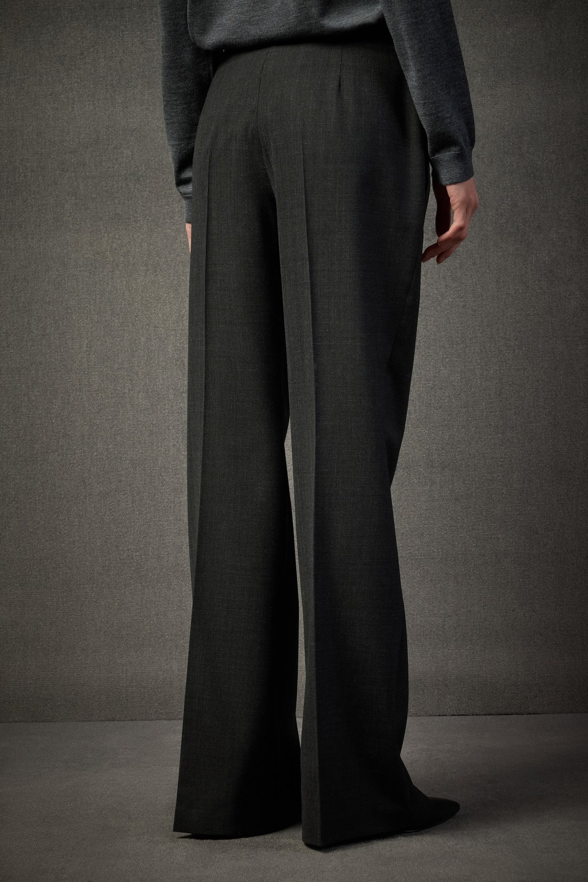 WIDE-LEG TROUSERS IN WOOL FRESCO WITH PRESSED CREASES AT THE FRONT, CONCEALED FASTENING AND SLANTING SIDE POCKETS.