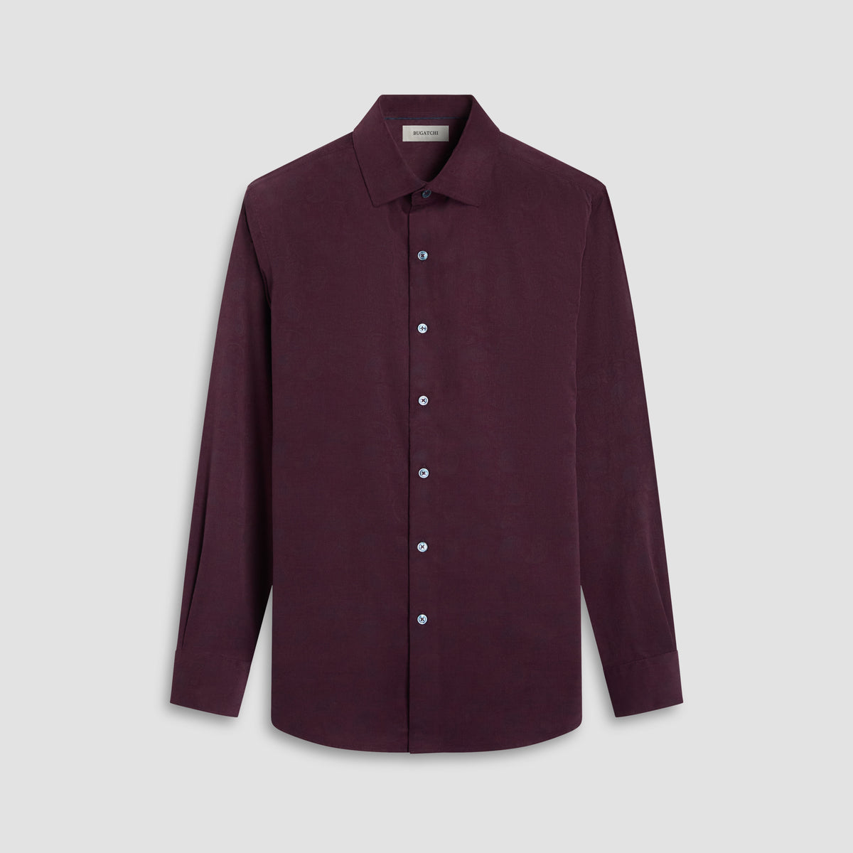 The Axel long-sleeve shirt in paisley print is crafted from premium 100% Italian cotton pinwale corduroy. It features a spread collar, mother-of-pearl buttons, a curved hem that looks great tucked or untucked, and adjustable notched cuffs that also convert for cufflinks. A refined, all-occasion shirt.
